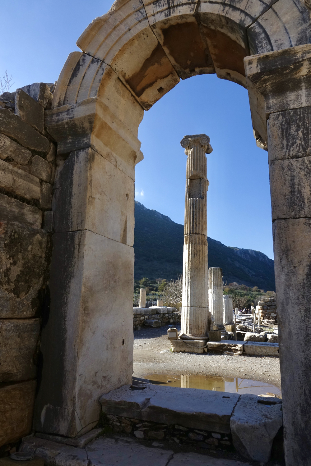 立柱背后是市政廳遺址。經(jīng)過幾百年的地貌變遷,以弗所的入海口漸漸被淤泥填塞,它賴以生存的海洋貿(mào)易遂告終結(jié),加上地中海沿岸頻發(fā)的地震,以弗所難逃被遺棄的噩運(yùn),這座新約《圣經(jīng)》中出現(xiàn)過的城市,最終淪為一片大理石廢墟。李仁奇 攝