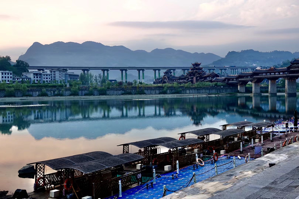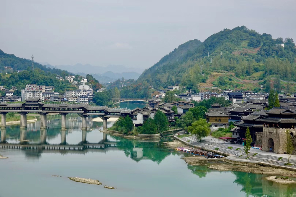 橫跨于濯水古鎮(zhèn)阿蓬江上的超長廊橋有“世界第一風雨廊橋”之稱。李仁奇 攝