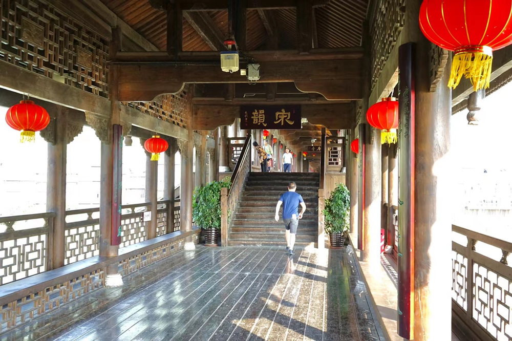 廊橋連著古鎮(zhèn),下了廊橋就進入了古鎮(zhèn)。李仁奇 攝