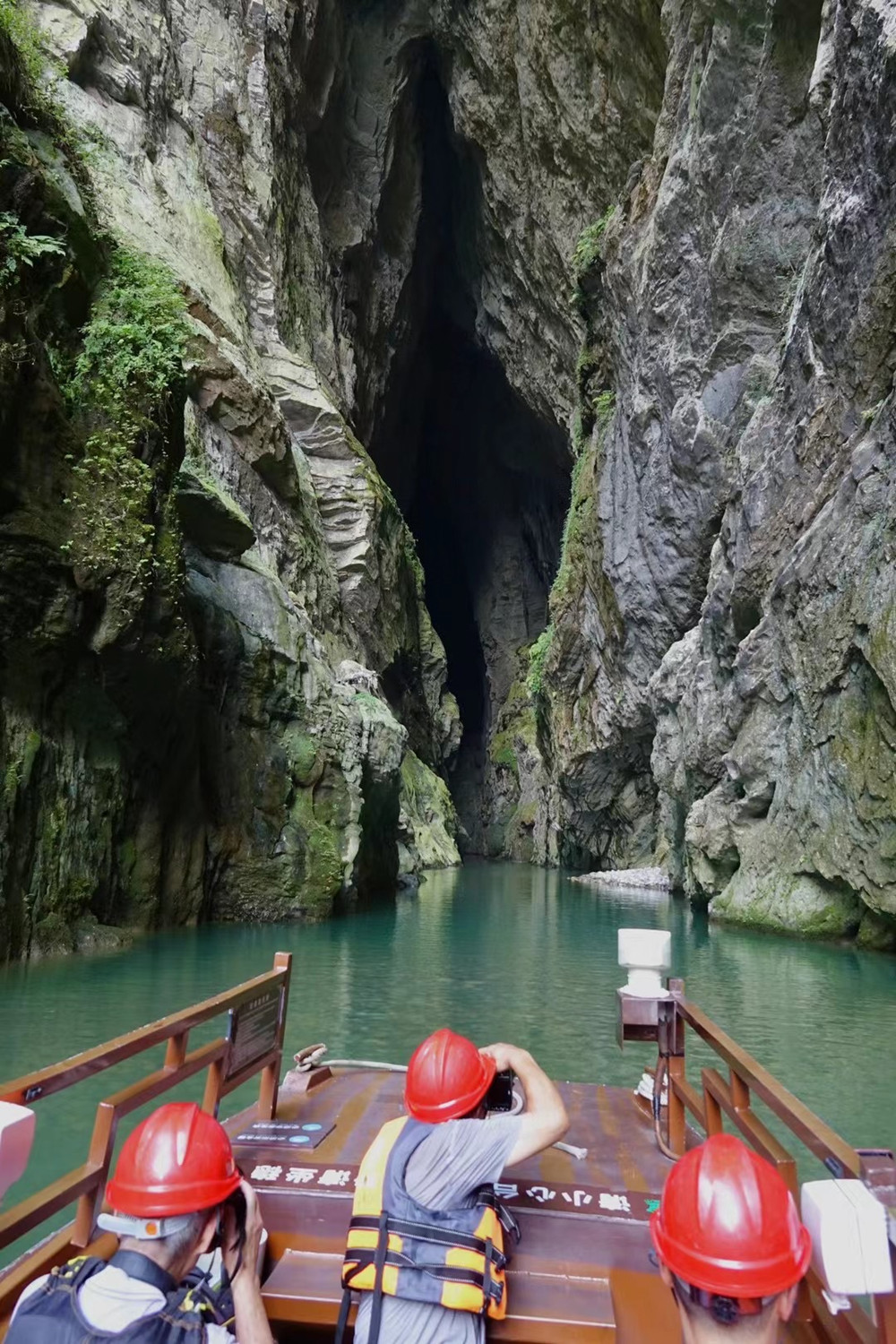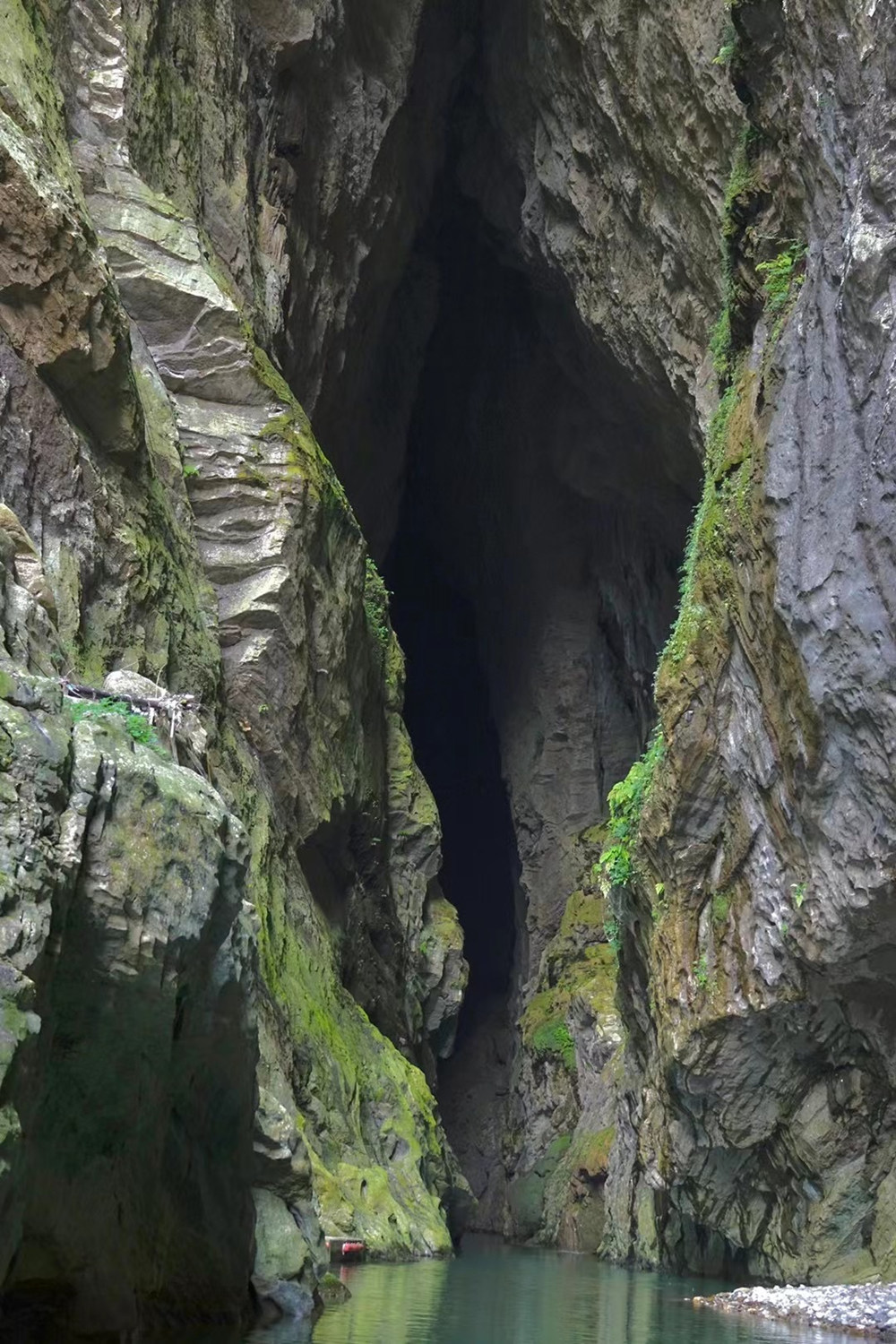 “暗河”指的是這條河流穿行溶洞的部分。里面漆黑一片,伸手不見五指,但中段有“蒼天有眼”(實為天生橋)奇觀,末端有形似“天下第一刀”的天空,令人稱奇。李仁奇 攝