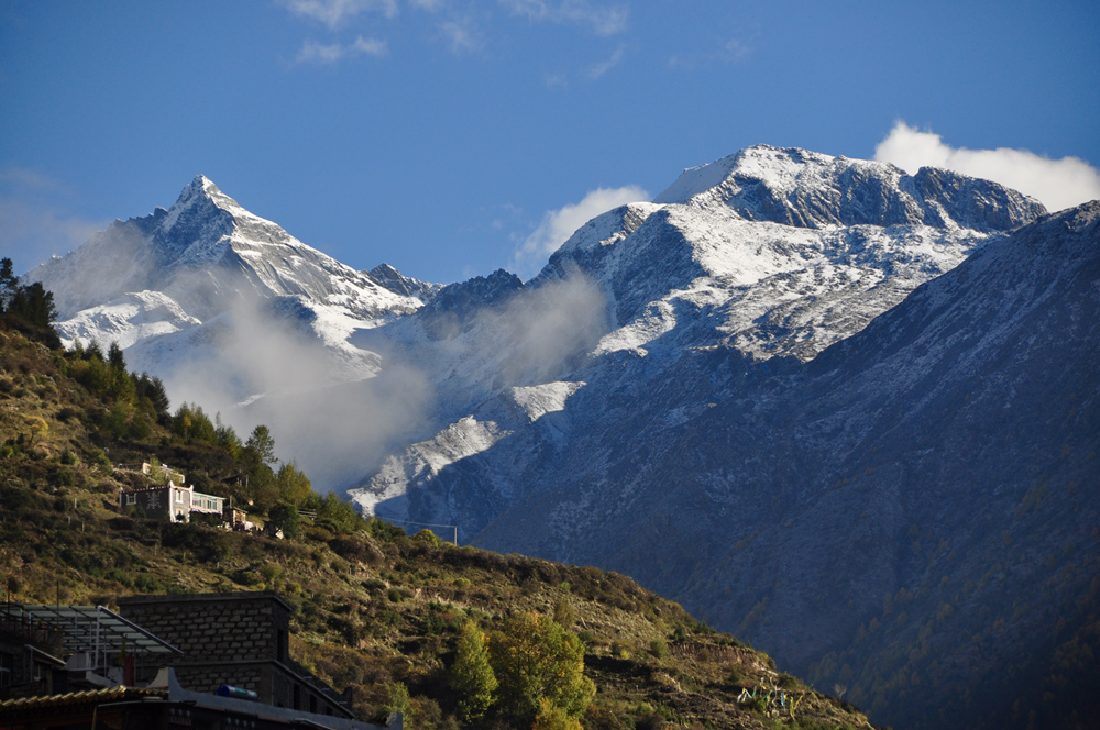 四座山峰長年冰雪覆蓋,因幺妹身材最為苗條,經(jīng)常云遮霧繞,最難窺得全貌,素有“蜀山之后”、“東方的阿爾卑斯”之稱,與“蜀山之王”貢嘎山遙遙相望。李仁奇 攝