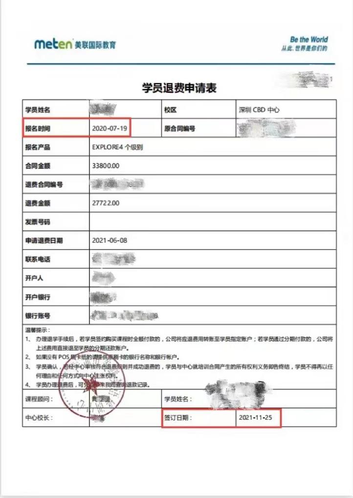 美聯(lián)英語(yǔ)(福田CBD中心) :商家答應(yīng)退款卻一拖再拖
