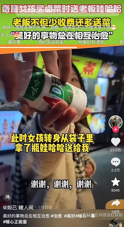 聾啞女孩買鹵菜時(shí)送老板娃哈哈