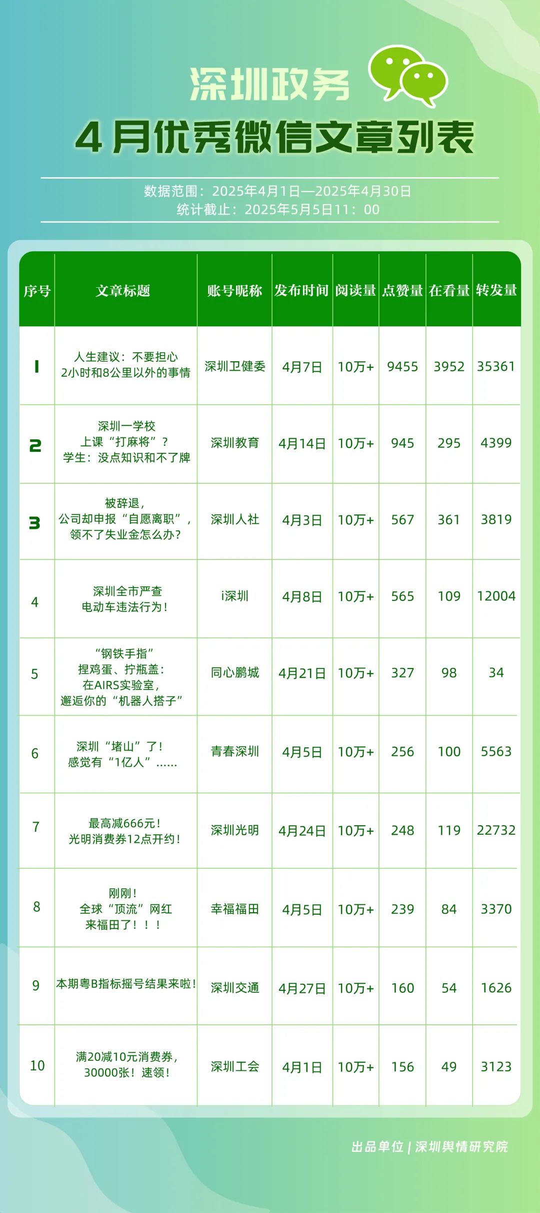 四、4月深圳優(yōu)秀政務(wù)新媒體賬號