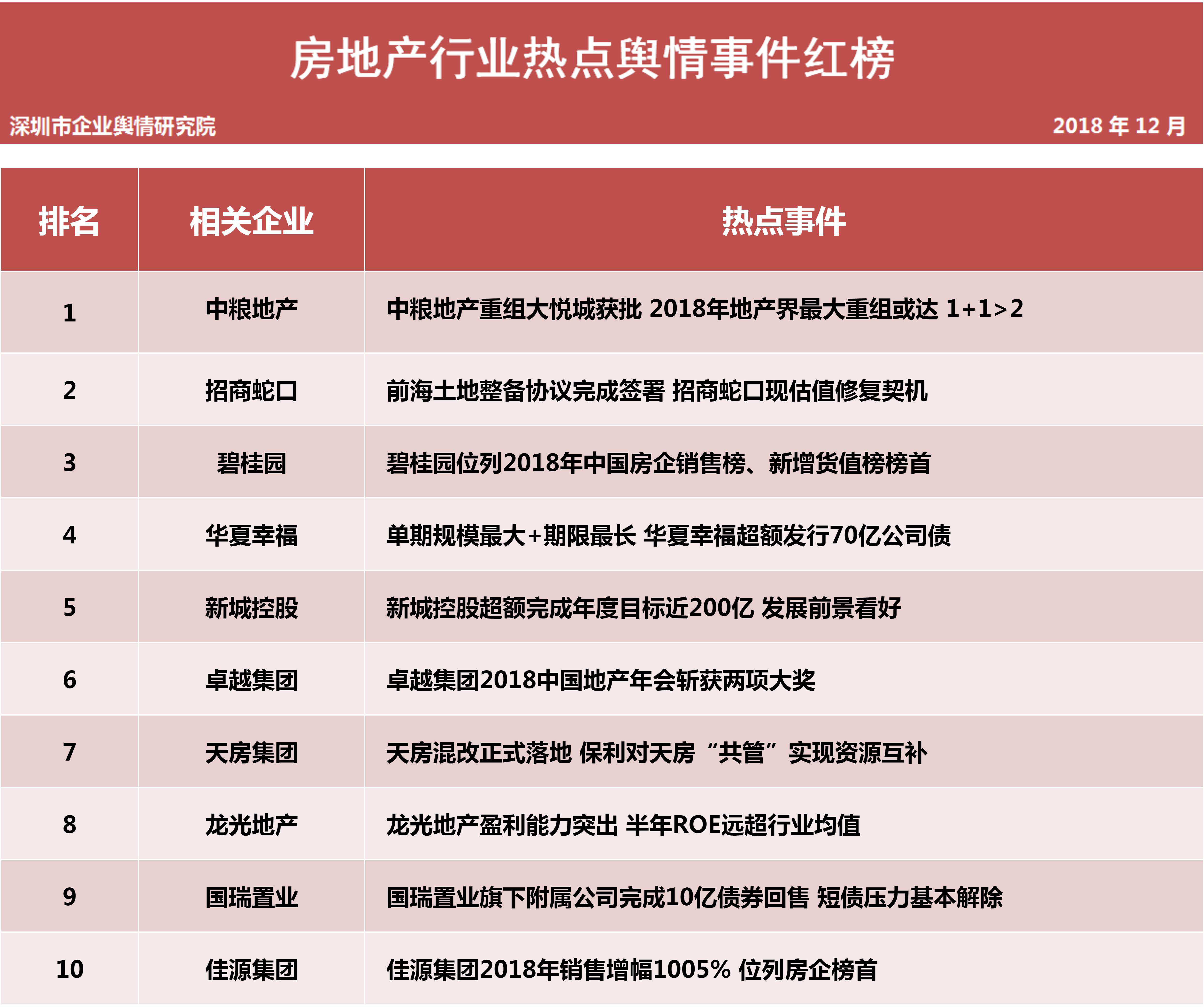 1月31日,深圳企業(yè)輿情研究院發(fā)布第十二批企業(yè)輿情榜單。本次榜單重點(diǎn)聚焦房地產(chǎn)及醫(yī)藥保健兩個(gè)行業(yè)。