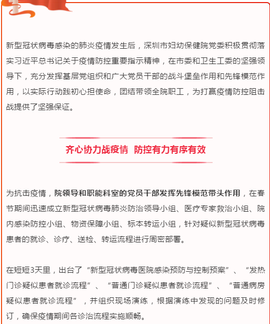 “婦女、兒童抵抗力比較弱,所以母嬰疫情防控工作更加顯得尤為重要。我們是全市婦幼的’龍頭’單位,不僅要做好全院的疫情防控工作,還承擔(dān)著向全市提供為母嬰健康保駕護(hù)航的指引工作,作為醫(yī)務(wù)人員我們更是責(zé)無旁貸要做好本職工作?!百嚤叹旮嬖V記者,深圳市婦幼保健院是全市49家發(fā)熱門診之一,作為全市唯一一家婦幼三甲專科醫(yī)院,該院承擔(dān)著更多在特殊時(shí)期為母嬰健康與安全保駕護(hù)航的作用。